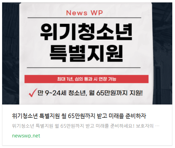 | 지원대상 | 만 9~24세 청소년 (위기상황 + 소득 100% 이하) |