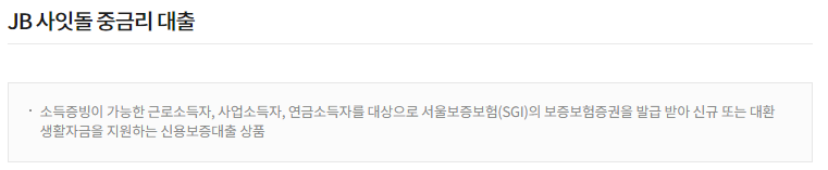 JB전북은행 모바일대출 사잇돌 중금리 상품 금리 및 한도 신청방법 정리