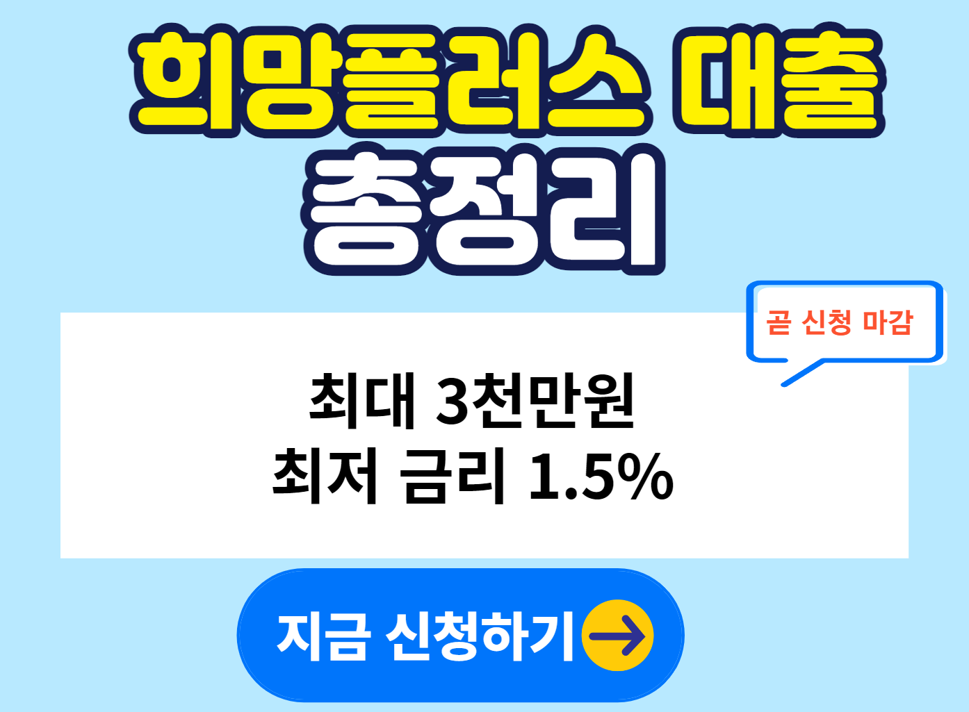 저, 중, 고신용에 따라 지원하는 프로그램으로 오늘은 소상공인 특별대출인 희망플러스 대출에 대해 알아보도록 하겠습니다.